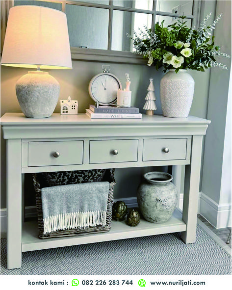 - Aksen Fluted atau Bergelombang: Pintu atau laci buffet dihiasi dengan pola vertikal bergelombang, menambah dimensi dan tekstur tanpa menghilangkan kesan minimalis.