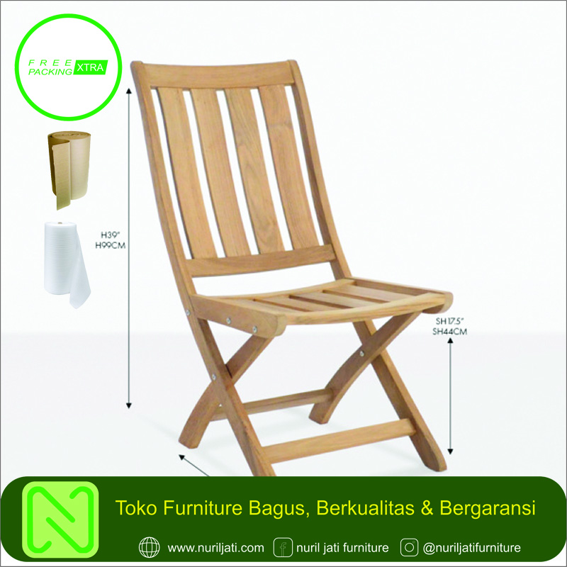 Kusi Lipat Jati Garden Model Minimalis ini asli buatan nuril jati furniture Handmade yang dikerjakan langsung oleh tukang kayu berpengalaman kami. Dengan menggunakan bahan kayu jati berkualitas TPK Great A menjadikan kursi cafe ini sangatlah bagus serta memiliki kontruksi yang kuat dan cocok untuk mengisi interior cafe & resto anda atau juga bisa sebagai kursi teras dihalaman depan rumah anda.