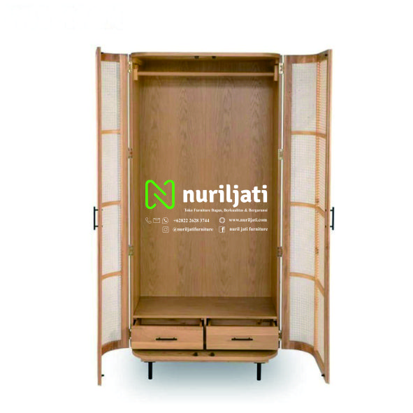 Lemari rattan minimalis modern multifungsi menawarkan kombinasi sempurna antara keindahan dan kepraktisan. Desainnya yang simpel dengan sentuhan anyaman rattan memberikan kesan hangat dan modern. Furnitur ini tidak hanya berfungsi sebagai tempat penyimpanan, tetapi juga bisa menjadi elemen dekoratif yang menonjol di ruangan mana pun.