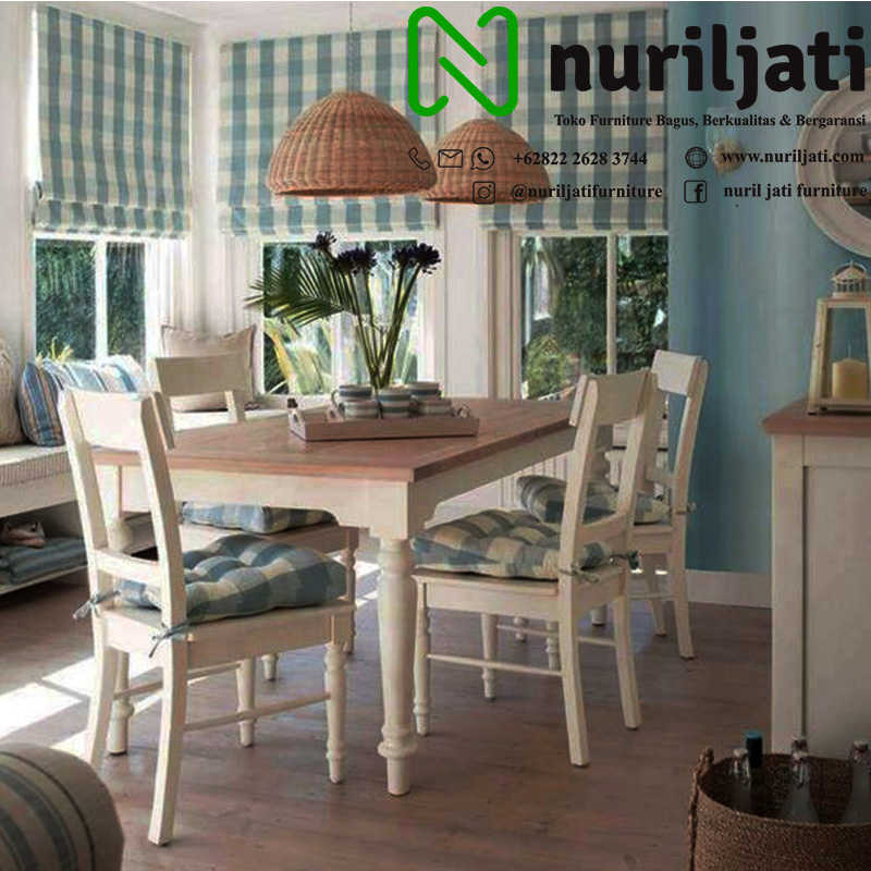 Jual Meja Makan Aurel Duco Putih Top Jati