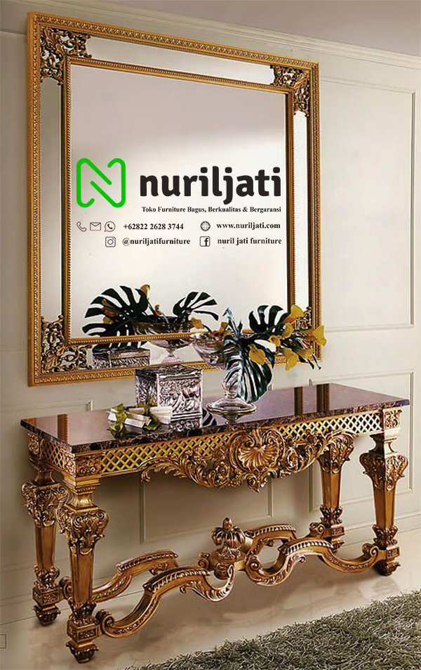 Meja Rias Safira ini salah satu produksi mebel ukir interior untuk ruang kamar anda dengan menggunakan model ukir mewah gold khas jepara terbaru dengan menyesuaikan trend era furniture meja rias saat ini. Meja rias ukir berkualitas ini merupakan salah satu produk interior premium klass untuk ruang kamar anda yang paling populer saat ini.